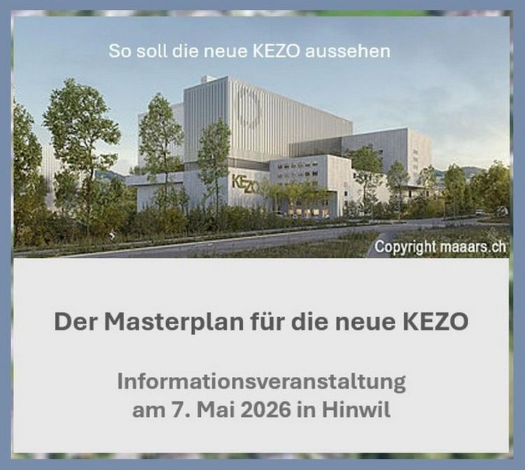 Die KEZO plant in Hinwil einen Ersatzneubau ihrer Kehrichtverwertungsanlage. In den letzten Monaten wurde dazu ein Masterplan erarbeitet. Diesen stellt die KEZO nun an einer öffentlichen Informationsveranstaltung in Hinwil vor.